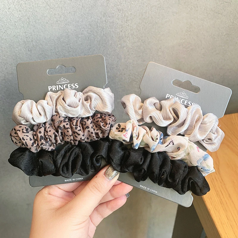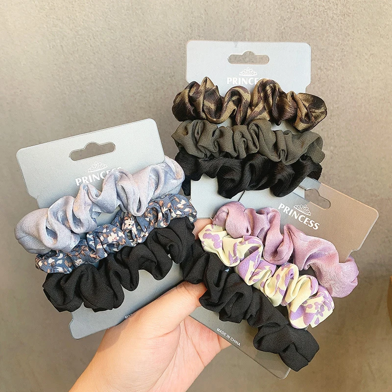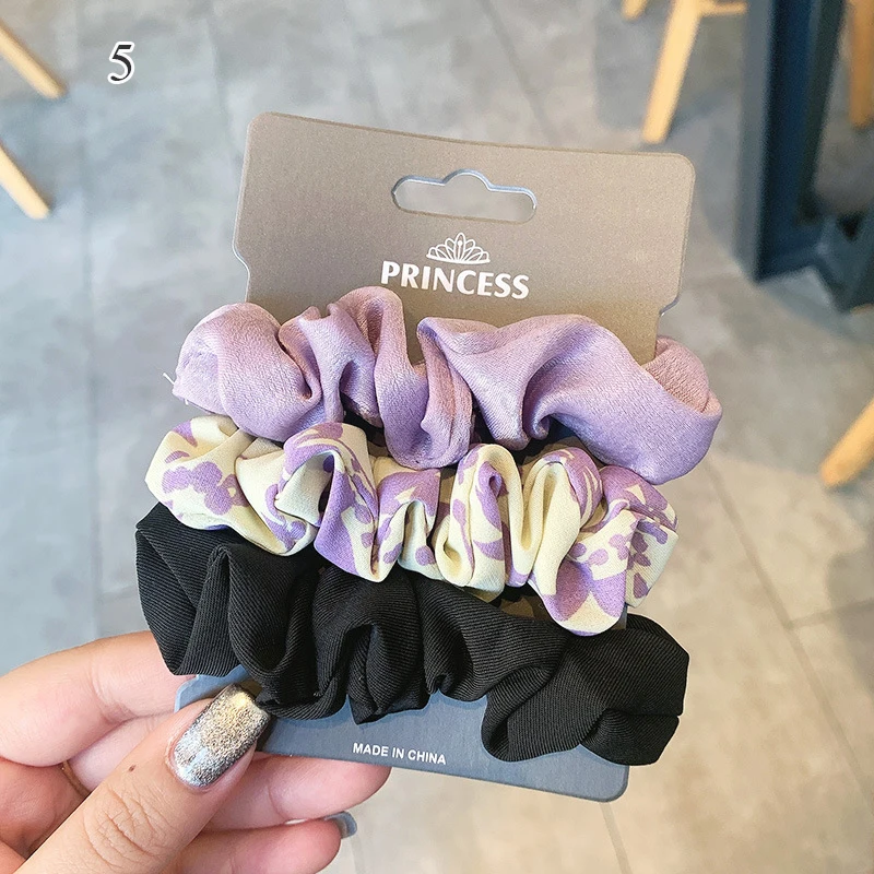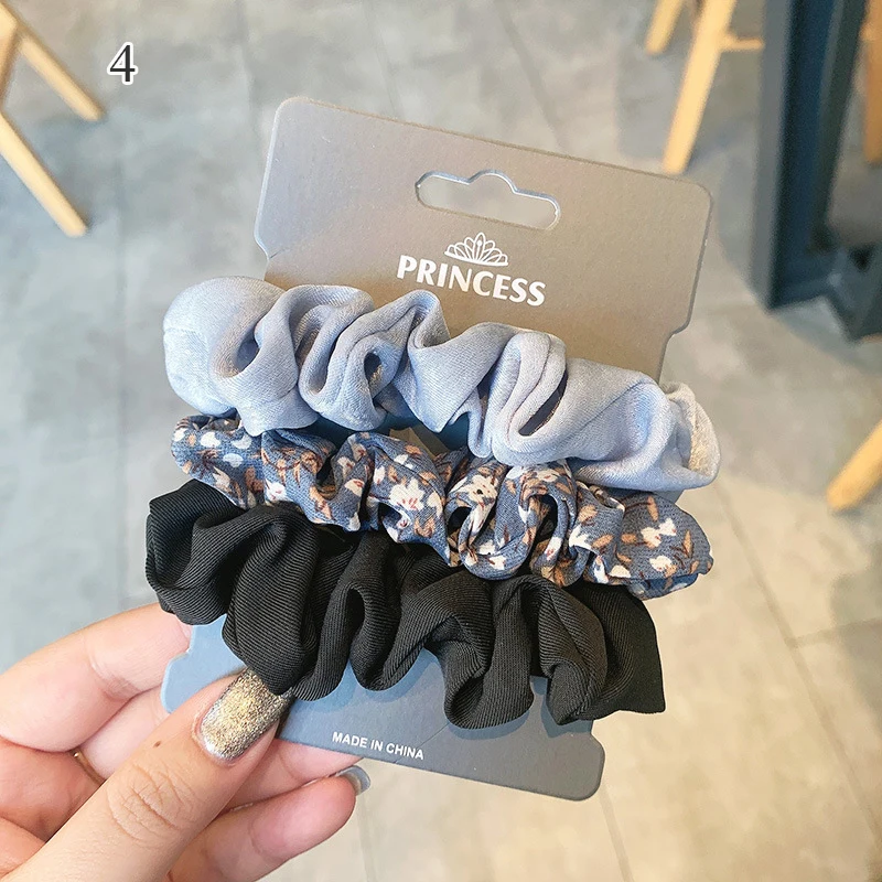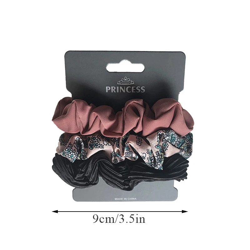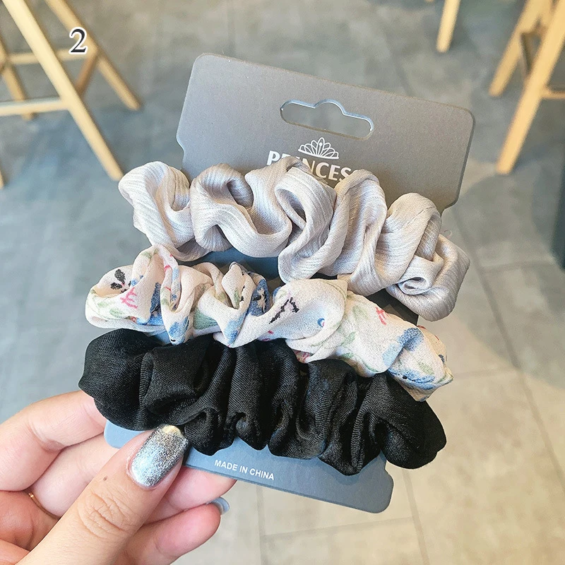 Hair Accessories Ponytail Holder Hair Ties Solid Color Floral Hair Rope 3Pcs Silk Satin Scrunchies Set 1 Set Handmade Simple