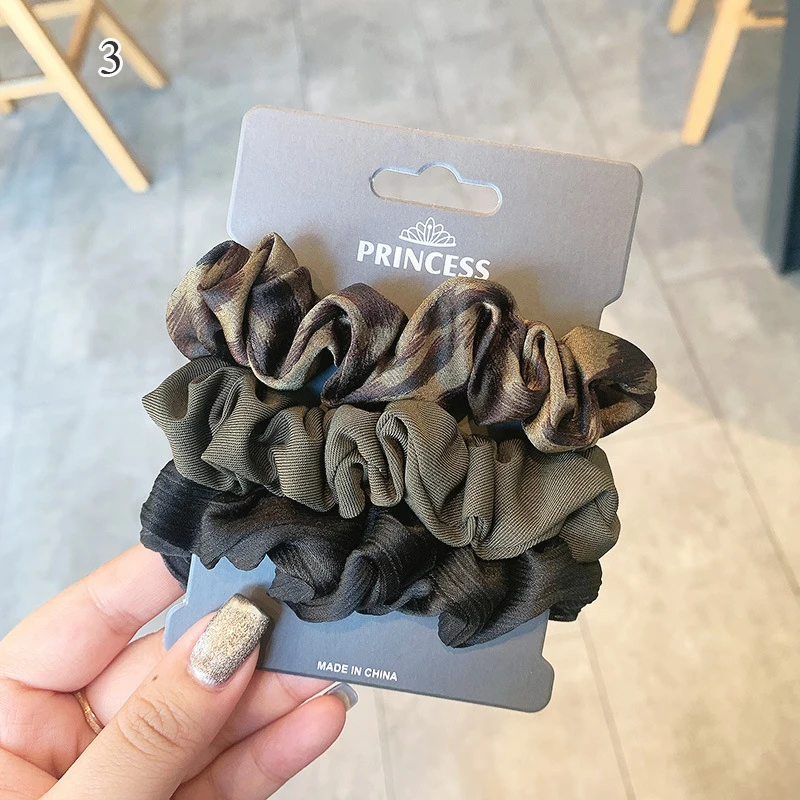Free 3Pcs/Set Women Girls Sweet Colors Satin Silk Elastic Hair Band Lady Solid Scrunchies Rubber Bands Female Hair Accessories