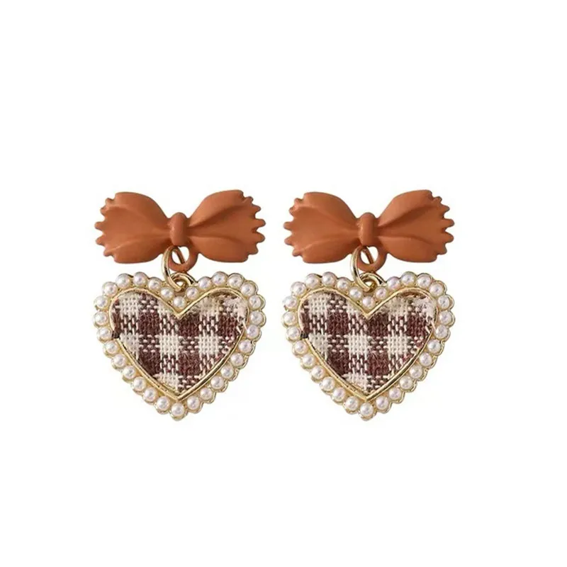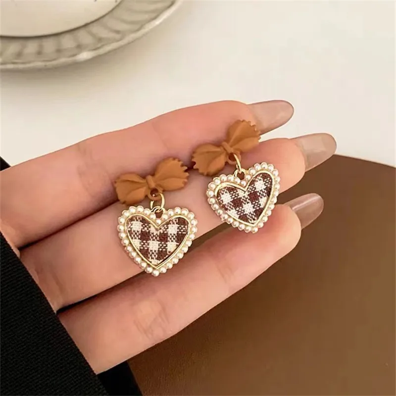 Korean Heart Drop Earrings For Women Girl Romantic Valentine's Day Gift Fashion Jewelry Trend Hanging Pearl Cute Bowknot Earring