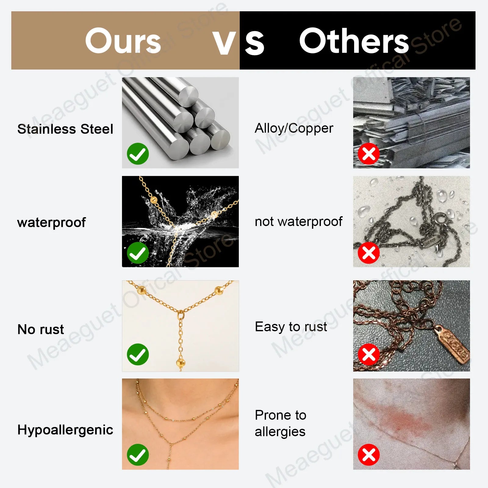 18K gold plated to ensure the chain keeps tarnish-free, nickel free, lead-free, and hypoallergenic for a long time.