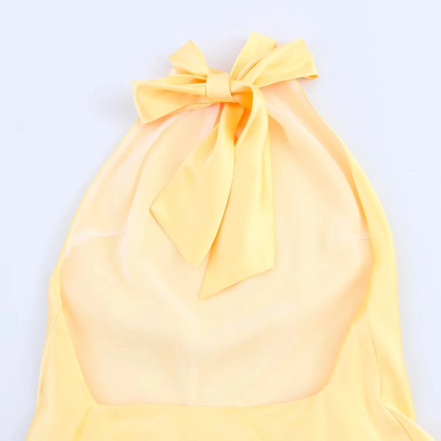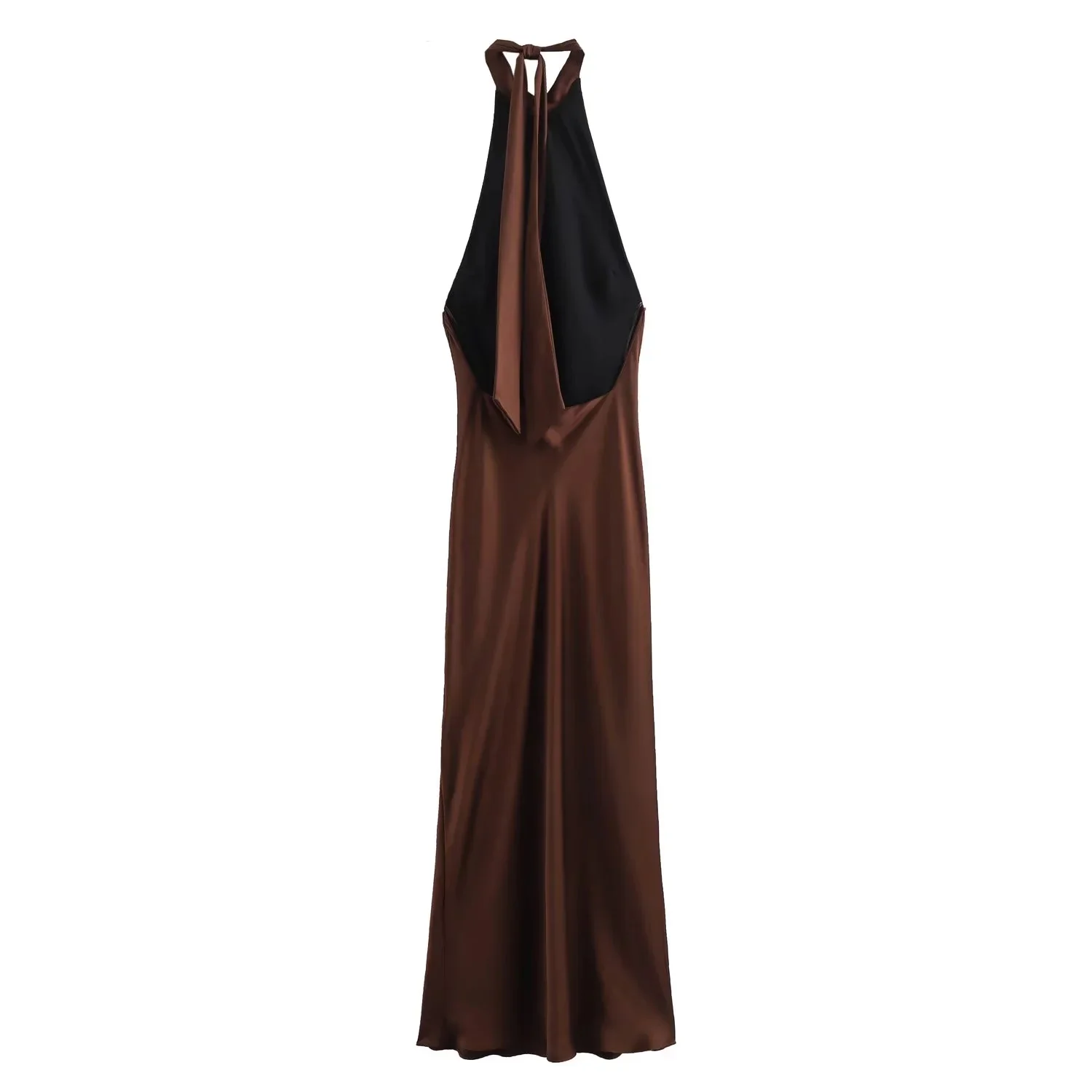 TRAFZA Sexy Chic Yellow Women Dress Solid Halter Sleeveless Backless Lace-up Long Vestidos New Fashion 2025 Spring Summer Dress