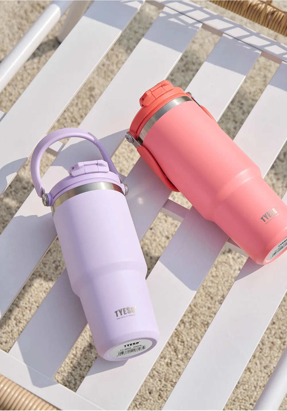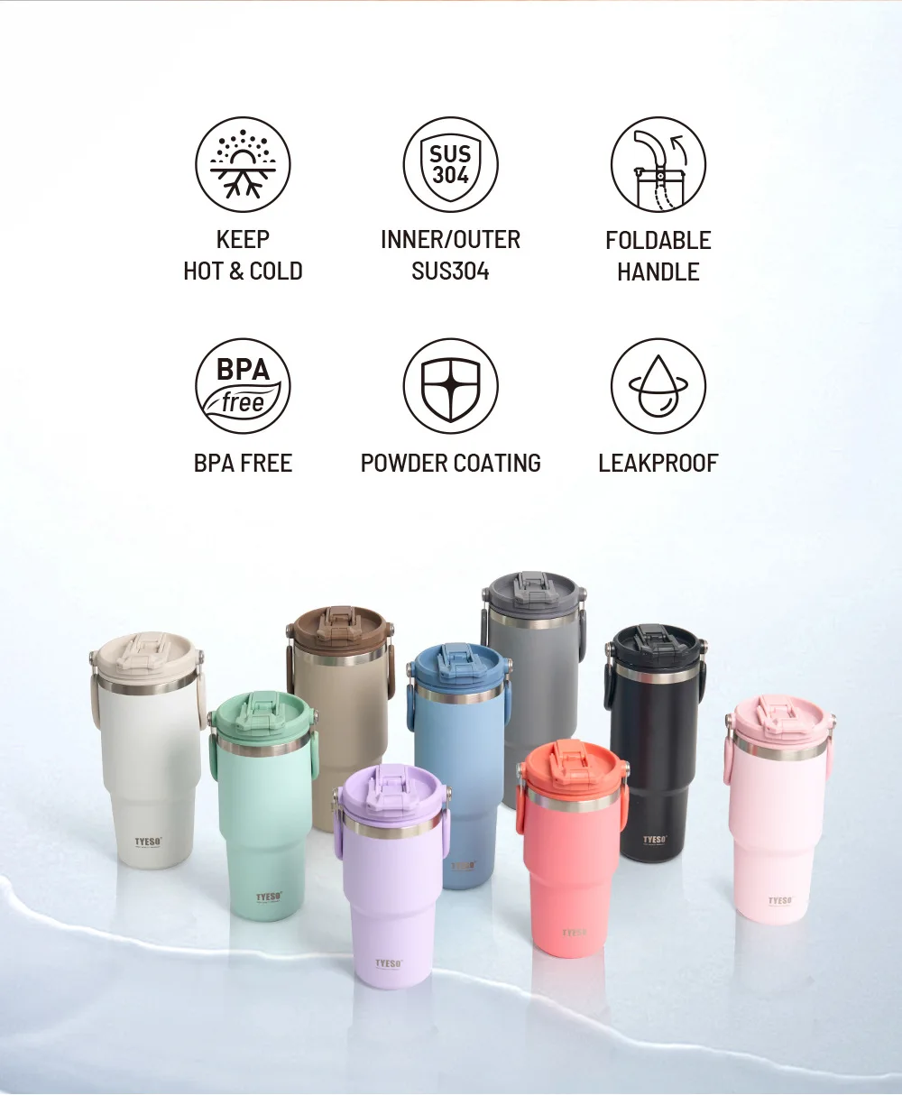 Tyeso Large-Capacity Thermoses Handle Vacuum Cup Dual-Drink Coffee Mug Stainless Steel Ice Cup Car Bottle Hot Cold Retention